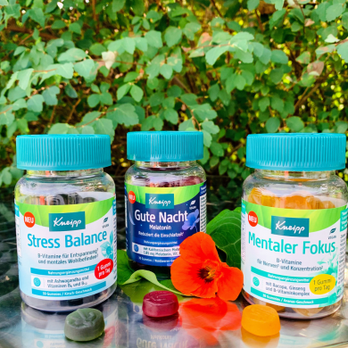 Die Herbstneuheiten von Kneipp® haben mit ihren Nahrungsergänzung Gummis voll den Nerv der Jahreszeit getroffen. Achtsamkeit und Selbstfürsorge stehen im Moment bei vielen auf dem Plan. Nahrungsergänzungsmittel gibt es einige, oftmals in Tabletten oder Kapselform zum einnehmen. Da ist mir die tägliche Einnahme in Form eines Gummidrops schon eher sympathisch. Täglich maximal einer soll gekaut oder gelutscht werden. Geschmacklich sind alle drei gut, haben zwar einen leichten krautigen Beigeschmack, den ich aber nicht als unangenehm empfinde.