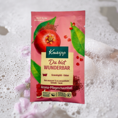 Das Pflegeschaumbad ‚Du bist wunderbar‘ von Kneipp® sorgt für eine Auszeit vom Alltag und verzaubert unsere Sinne mit seinem herrlich fruchtigen Duft. Dieser sorgt für eine gelöste Atmosphäre und damit auch für ein rundum entspanntes wohliges Gefühl.