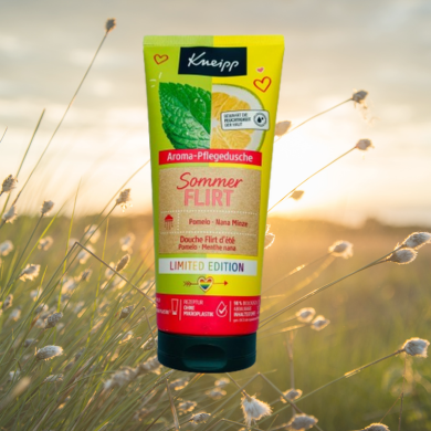 Die Aroma-Pflegedusche Sommerflirt Kneipp® sorgt mit ihrer Kombination Nana-Minze und Pomelo für sommerliche Momente unter der Dusche.
