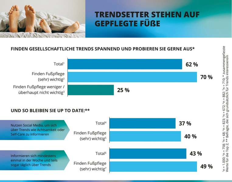 - 70 % der Fußpflege-Enthusiasten finden Trends spannend und probieren sie gerne aus