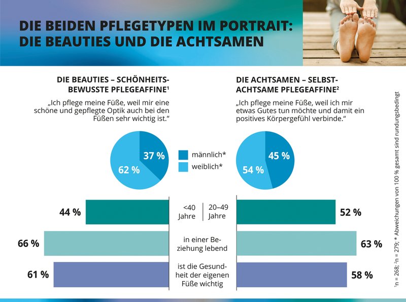 - Nur 27 % der Menschen, die Fußpflege wichtig finden, sind mit dem Zustand ihrer Füße zufrieden, bei den Fußpflege-Nihilisten sind es 47 %