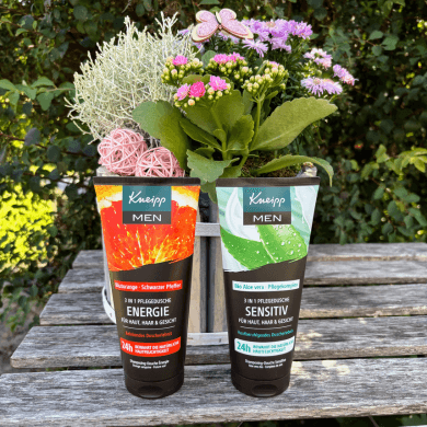 Die Kneipp® Men 3 in 1 Pflegeduschen sind für die Reinigung von Haut, Haaren und Gesicht gleichermaßen geeignet. Beide reinigen gründlich mit feinporigem Schaum und bewahren die natürliche Feuchtigkeit der Haut. Die Pflegedusche Energie sorgt für ein belebendes Duscherlebnis mit fruchtiger Blutorange und schwarzem Pfeffer, die Pflegedusche Sensitiv mit ihrem natürlichen Pflegekomplex und Bio Aloe Vera für Hautberuhigung, auch bei sensiblem Hauttyp.